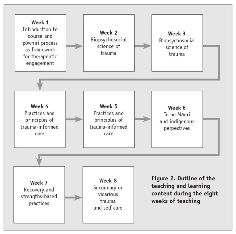 In contemporary society, events such as ongoing intergenerational and historical trauma (Smallwood et al., 2021), natural disasters (Fergusson et al., 2015) and the global trauma of the COVID-19 pandemic (Masiero et al., 2020) have further perpetuated or exposed people to mass trauma experiences. Recent literature suggests that the impact of the global mass trauma experienced from COVID-19 has resulted in a second “trauma” pandemic, occurring due to the distress and psychological harm caused by the original pandemic (Goddard et al., 2021). Addressing historical and intergenerational trauma is a priority for services in countries where the colonisation of the indigenous people (for example Aotearoa, New Zealand) has occurred (Darwin et al., 2023; McClintock et al., 2018; Patterson et al., 2018). The ongoing effects of the trauma experienced through loss of land, forceable removal of children and acculturation are seen internationally among indigenous communities such as Māori, Aboriginal and Torres Strait Islanders and Canadian First Nations peoples (Menzies, 2019). In Aotearoa New Zealand, for instance, nearly two-thirds of adults who identify as Māori have experienced one or more traumatic events, compared to half of adults in the general population (Hirini et al., 2005). Statistically, Māori continue to be over-represented across health and trauma-based statistics due to the impacts of ongoing historical, intergenerational, situational and cumulative trauma (McClintock et al., 2018). The benefits of a trauma-informed approach to care for those receiving and delivering services are widely recognised and supported in the literature (Morrissey et al. 2005; Mental Health Coordinating Council, 2018; Sweeney et al., 2016), but this care must be carried out in a culturally appropriate way (Pihama et al., 2020; Pihama & Smith, 2023; Wirihana & Smith, 2014).