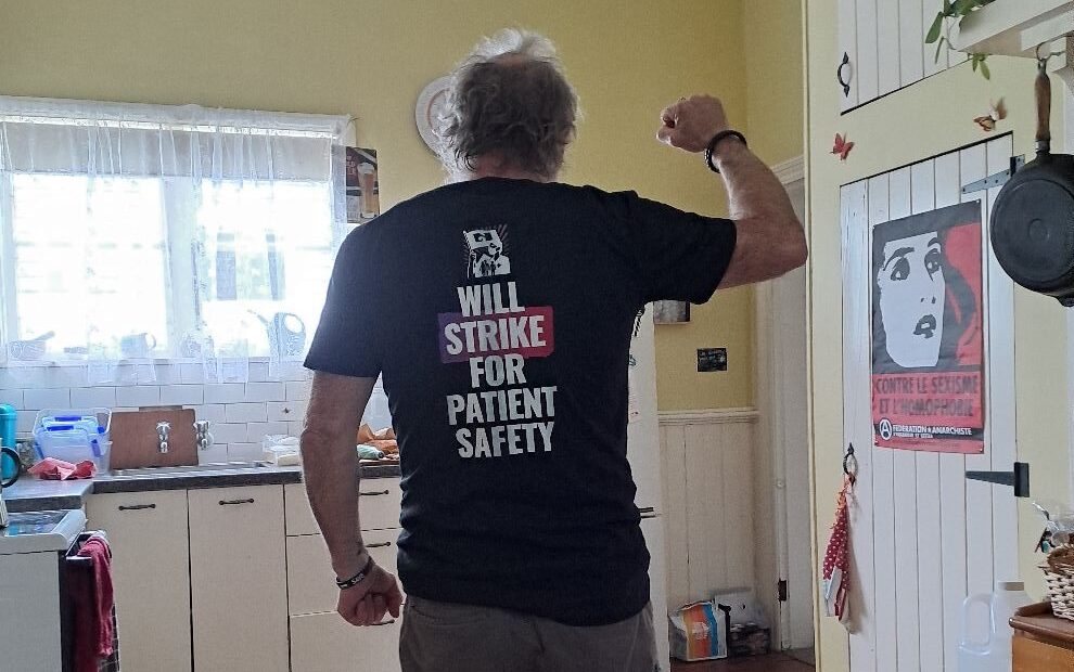 “This idea was initiated by delegates who work at Christchurch Hospital, after being inspired by what we saw unionised workers at St John and firefighters doing – wearing their messages about their struggles to work,” Dietschin said.
