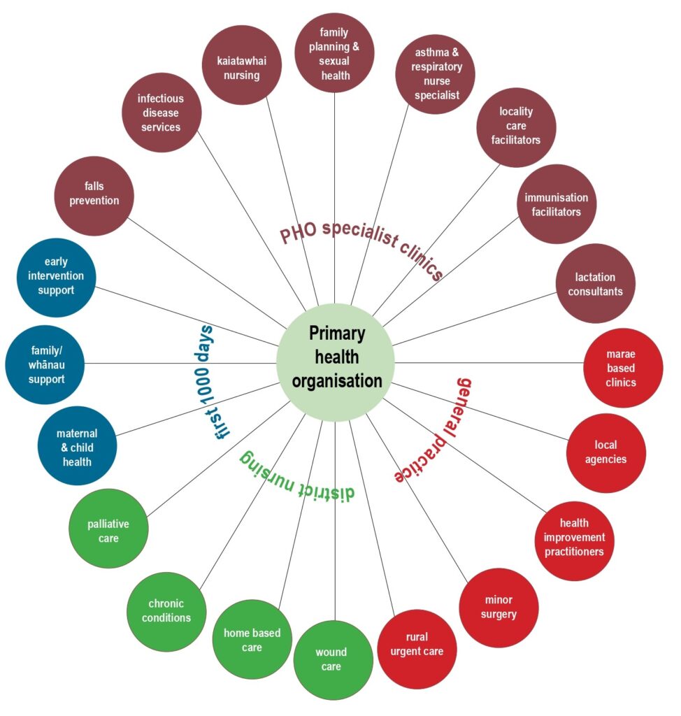 - General practice: Spokes included marae-based clinics in partnership with Māori health providers, local health agencies and rural urgent-care services.