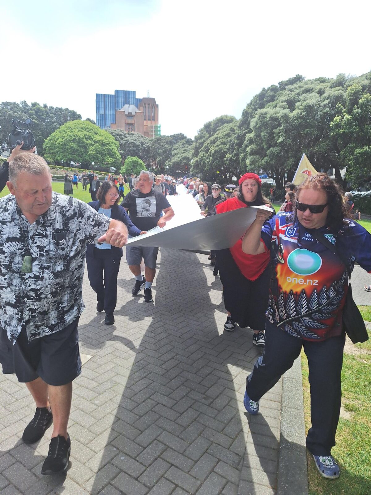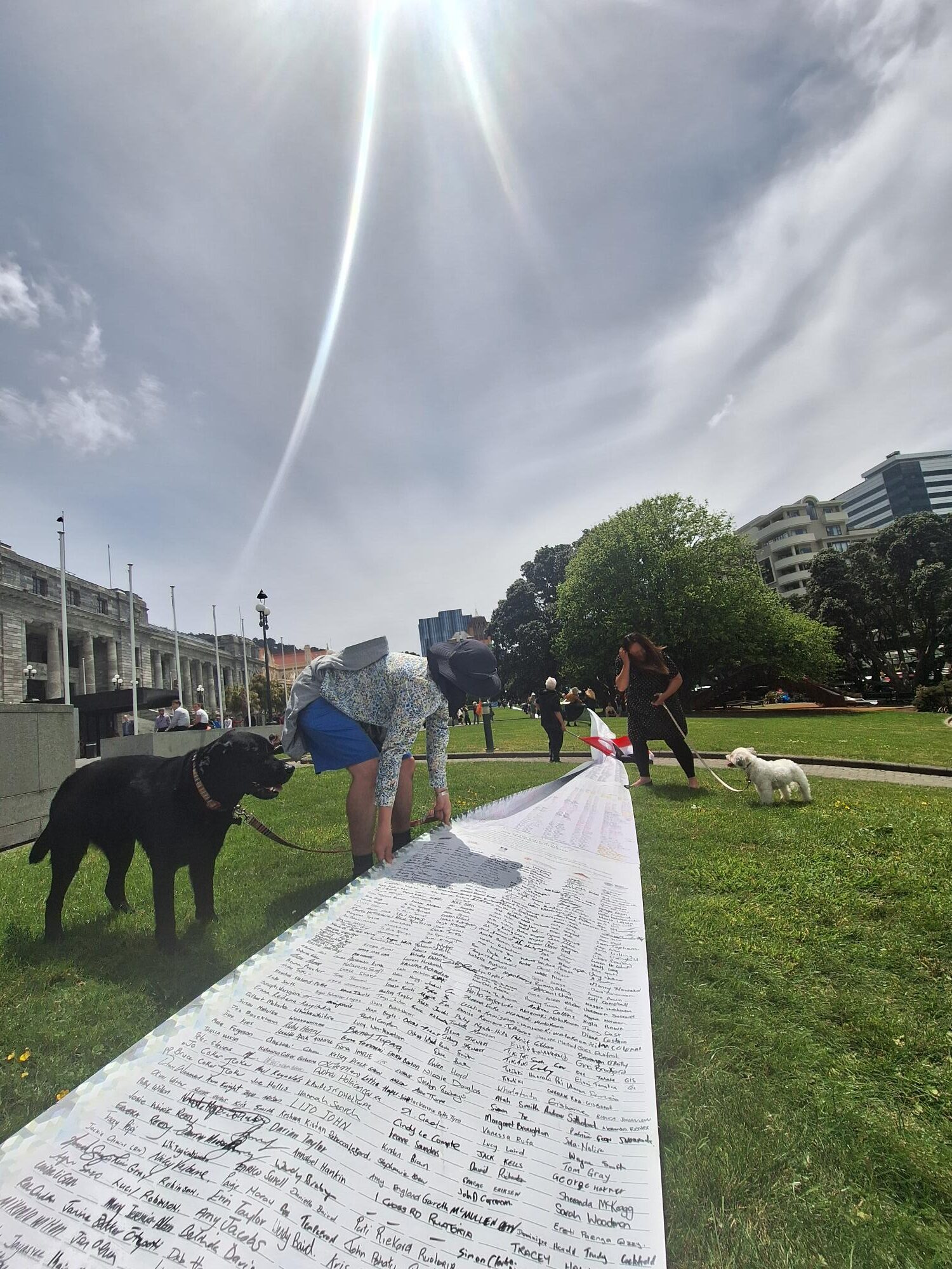 The Buller Declaration has been unrolled on Parliament’s front yard — sending a 276-meter long, 200-kilogram message to its occupants.