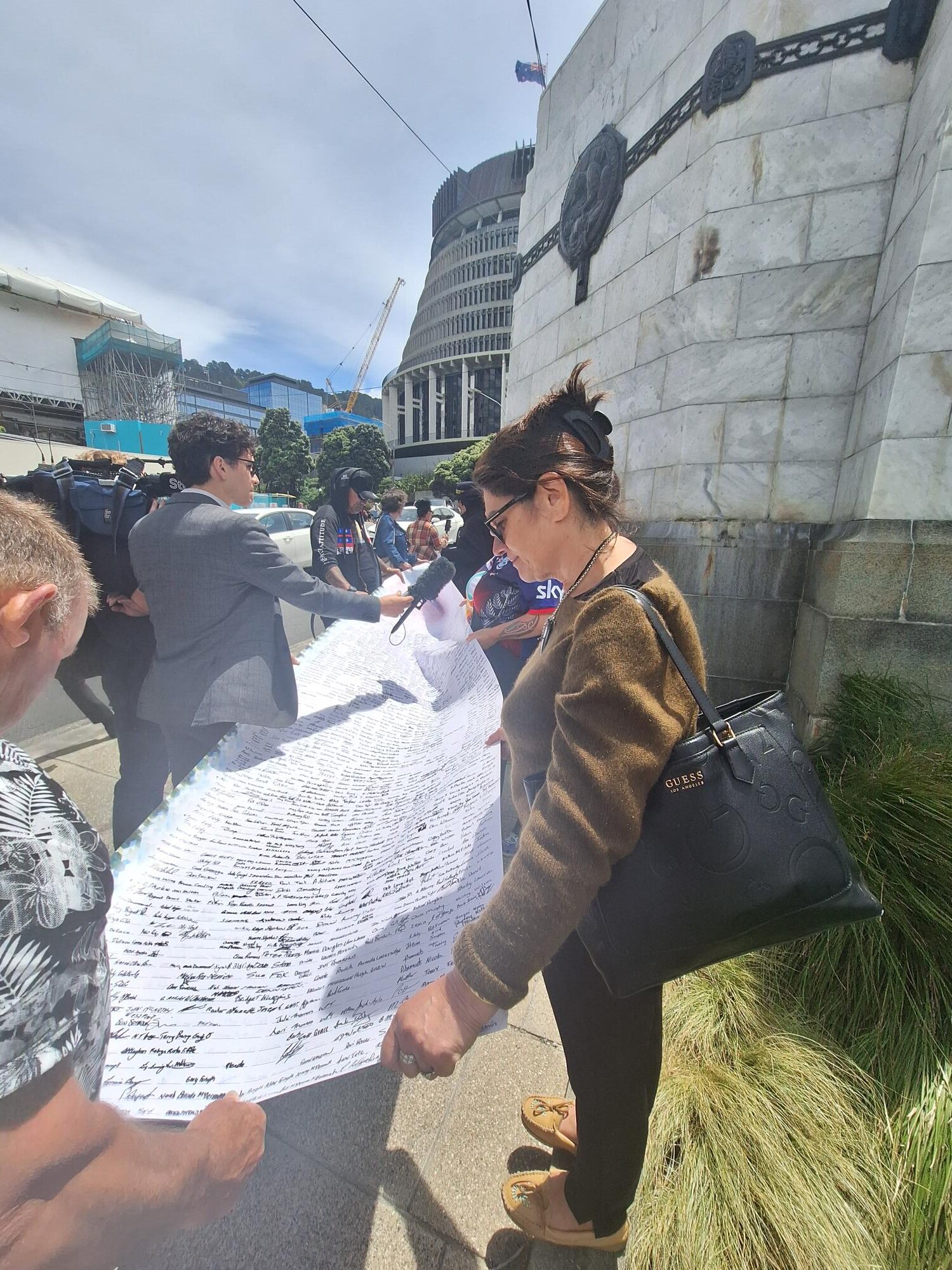 On Tuesday, health advocate Malcolm Mulholland delivered the petition, gathered with support from NZNO, to Parliament. He and supporters carried the scroll on a stainless steel roller up the front path, straining with the weight.