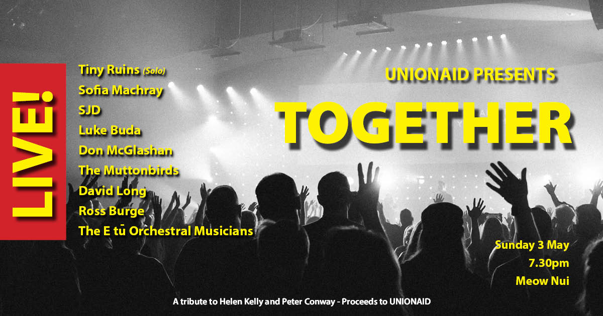 This evening of great Kiwi music is both a tribute to former union leaders Helen Kelly and Peter Conway, and a celebration of solidarity with the peoples of our Asia Pacific region at a time of increasing political division and fear. All proceeds to UnionAID projects.