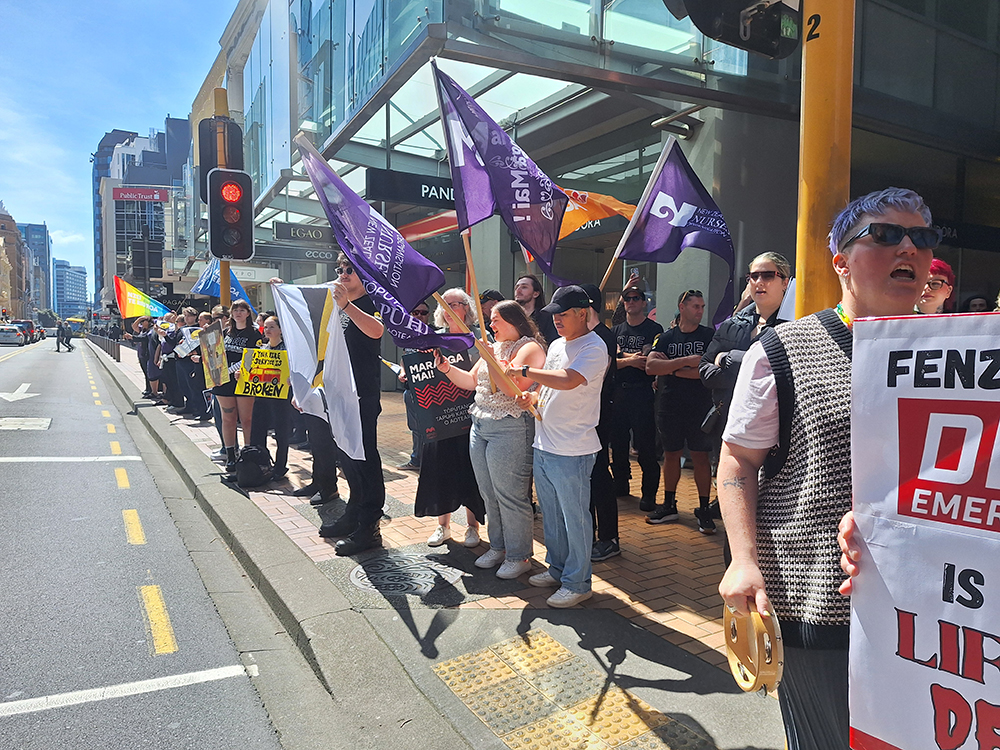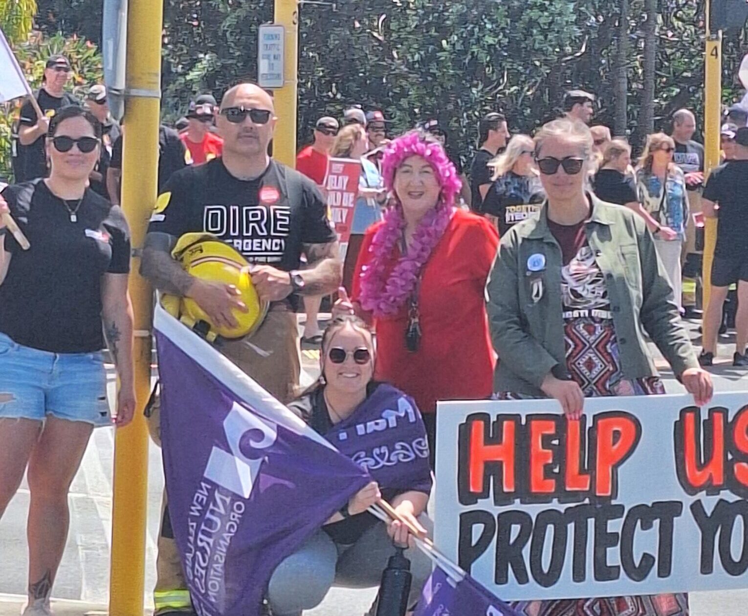Nurses, kaiāwhina and firefighters shared their struggles with unsafe staffing, as NZNO members turned out today to support their strike.