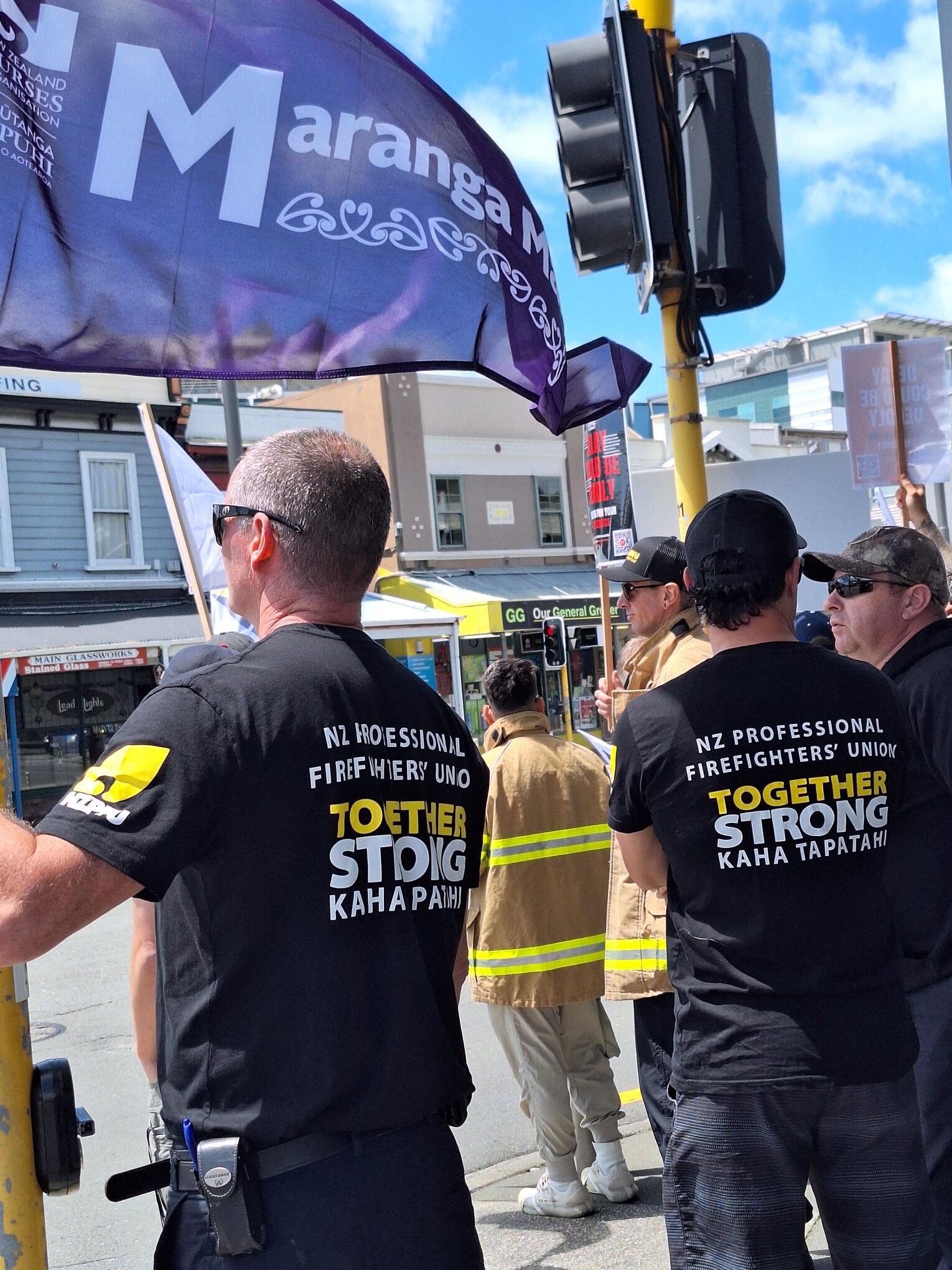 As NZNO nurses and kaiāwhina wrapped up their own gruelling 14-day work-to-rule strike with a “day of visibility” on Friday, many showed up to support striking Public Service Association (PSA) colleagues and firefighters.