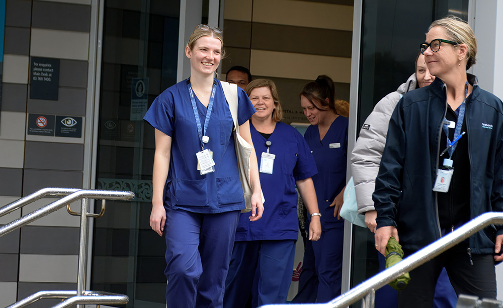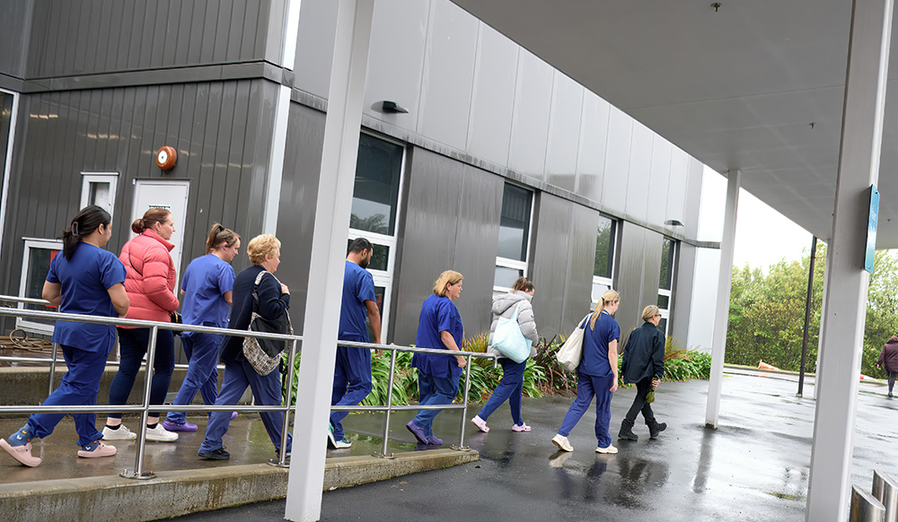 Nurses, kaiāwhina, teachers, doctors and allied workers walking off the job in Whangārei today.