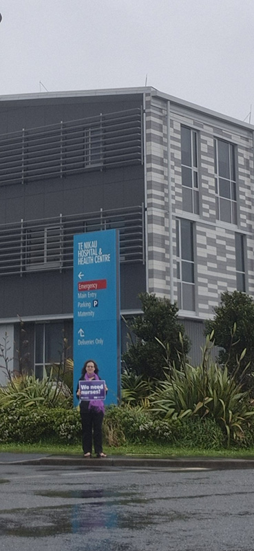 In Masterton, Wairarapa, registered nurse Amy Tubman said members had gathered at Wairarapa Hospital to officially walk off, but that was all they could do.